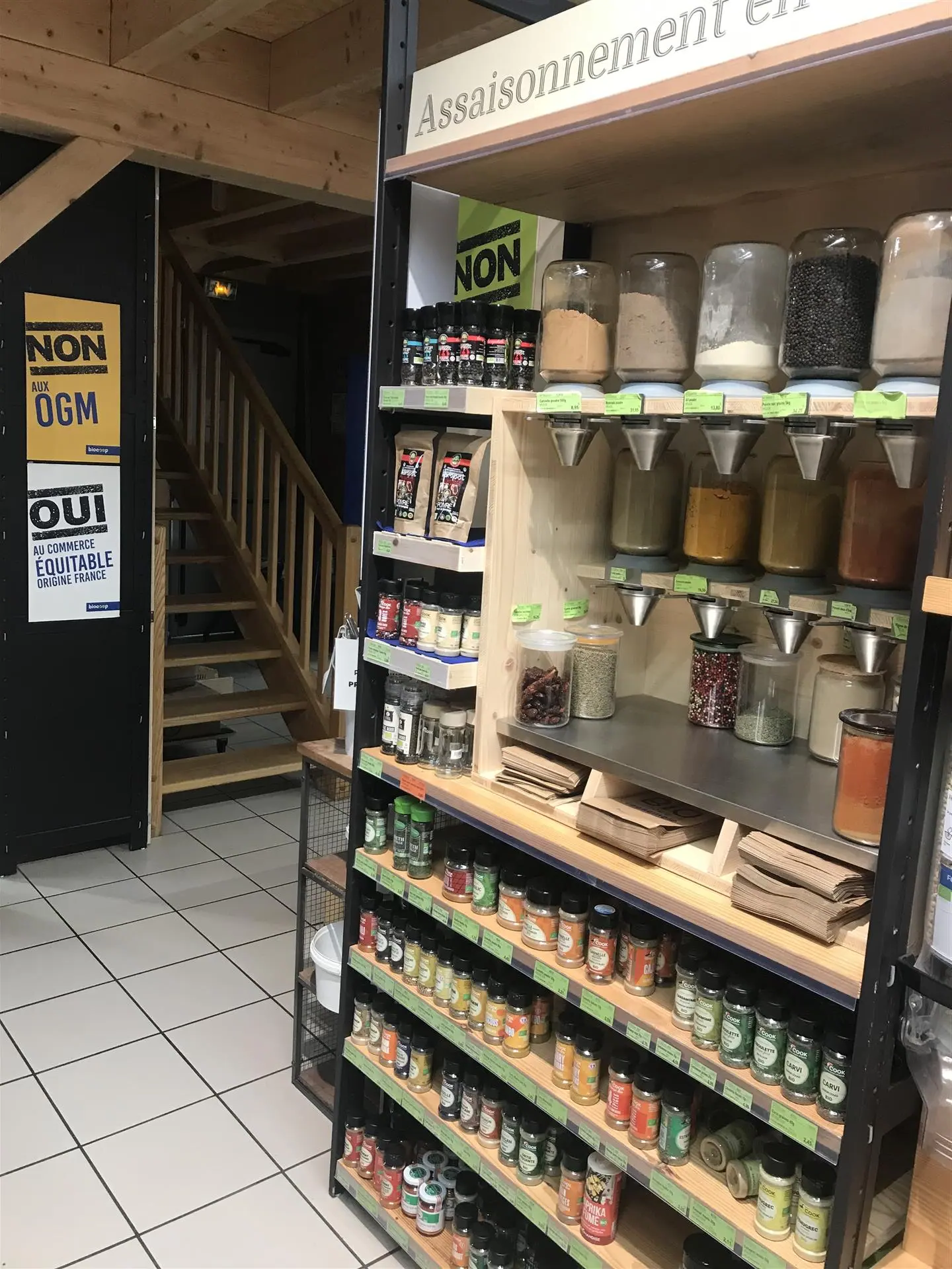 Magasin bio labellisé Bio Cohérence, proposant en priorité, des produits Bio locaux, des fruits et légumes bio, du vrac avec des contenant réutilisables, réemplois des bouteilles avec logo, Rayon fromages bio à la coupe. Un large rayon de produit d'hygiène et cosmétiques naturels, en vrac et locaux.